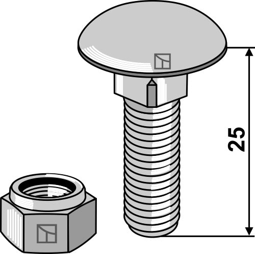 Skruv med skruvhuvud M10x1,5x25 med självlåsande muttrar