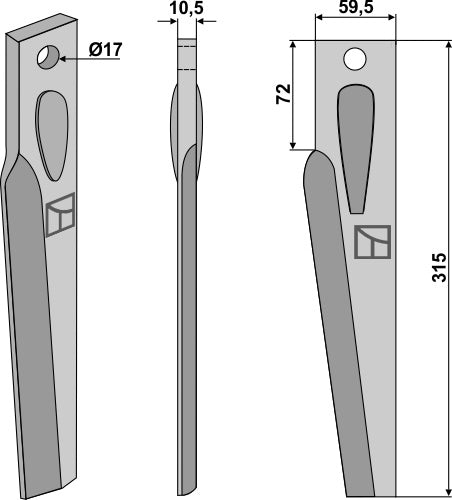 Tand för rotorharvar 315 mm, höger