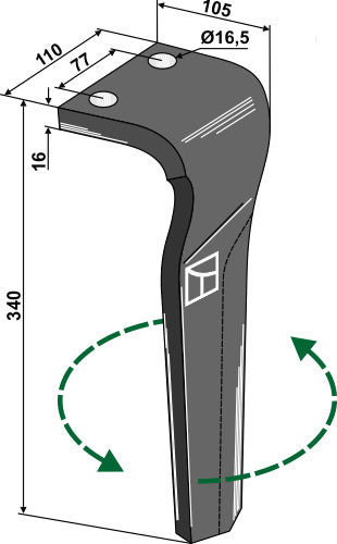 Tand för rotorharvar 340 mm, vänster