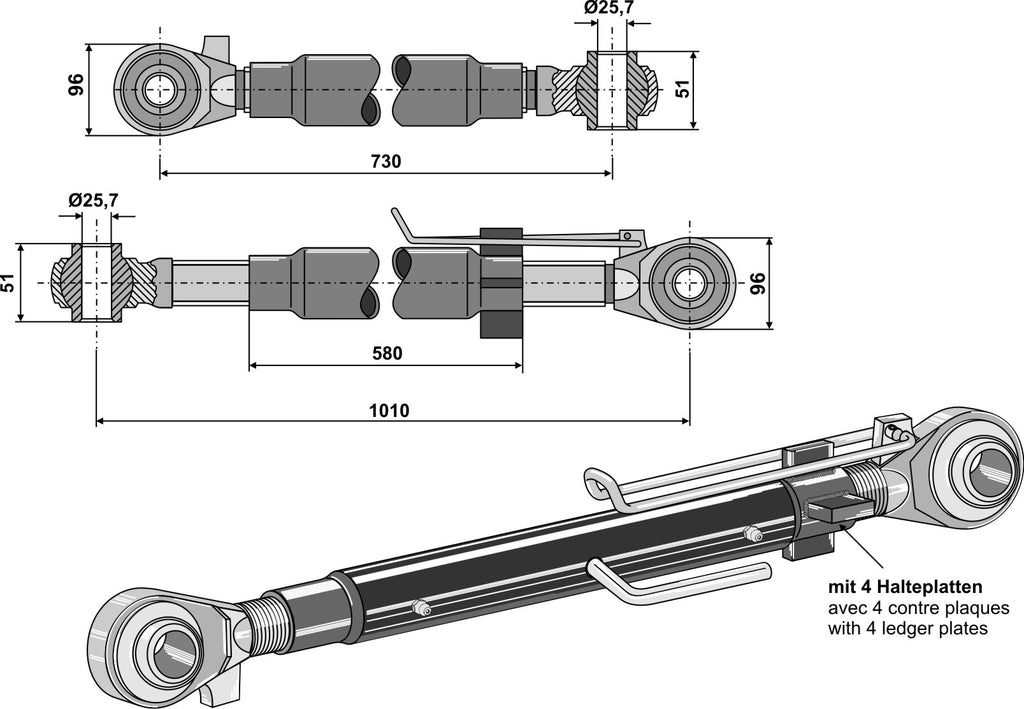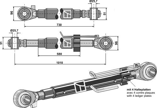 Övre länk med härdade dragstänger M42x3