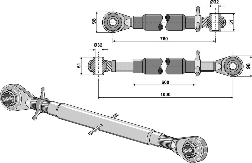 Topplänkar med härdad dragstång M36x3