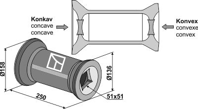 Övergångsstycke för 50x50 kvadratisk axel