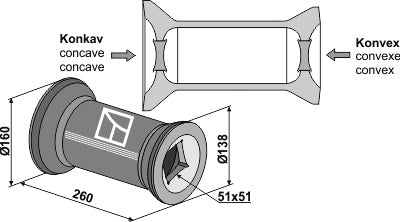 Övergångsstycke för 50x50 kvadratisk axel